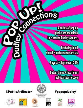 BOSTON - The Mayor's Office of Arts and Culture and the Boston Art Commission are proud to announce “Pop Up! Dudley Connections,” a selection of temporary public and performance art projects in Roxbury’s Dudley Square neighborhood. Images are available upon request.